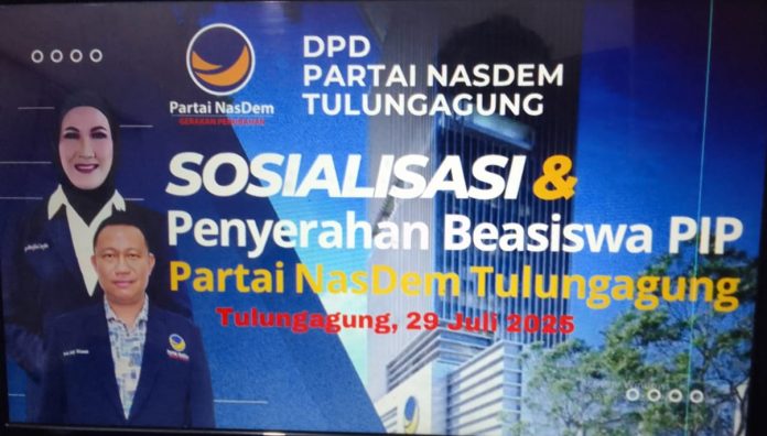 suaramerahputih.id // Tulungagung – Dewan Pimpinan Daerah (DPD) Partai NasDem Kabupaten Tulungagung menggelar sosialisasi sekaligus penyerahan bantuan beasiswa Program Indonesia Pintar (PIP) kepada para siswa penerima manfaat, Selasa (29/7/2025). Program ini merupakan aspirasi dari Lita Machfud Arifin, Anggota Komisi X DPR RI Fraksi Partai NasDem, yang juga menjabat sebagai Ketua DPW Partai NasDem Jawa Timur.