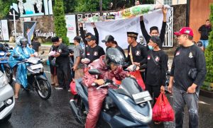 Meski sempat diguyur hujan deras di lokasi kegiatan, kondisi tersebut tidak menyurutkan semangat panitia untuk tetap menjalankan aksi sosial berbagi kepada masyarakat yang melintas di pusat kota tersebut.
