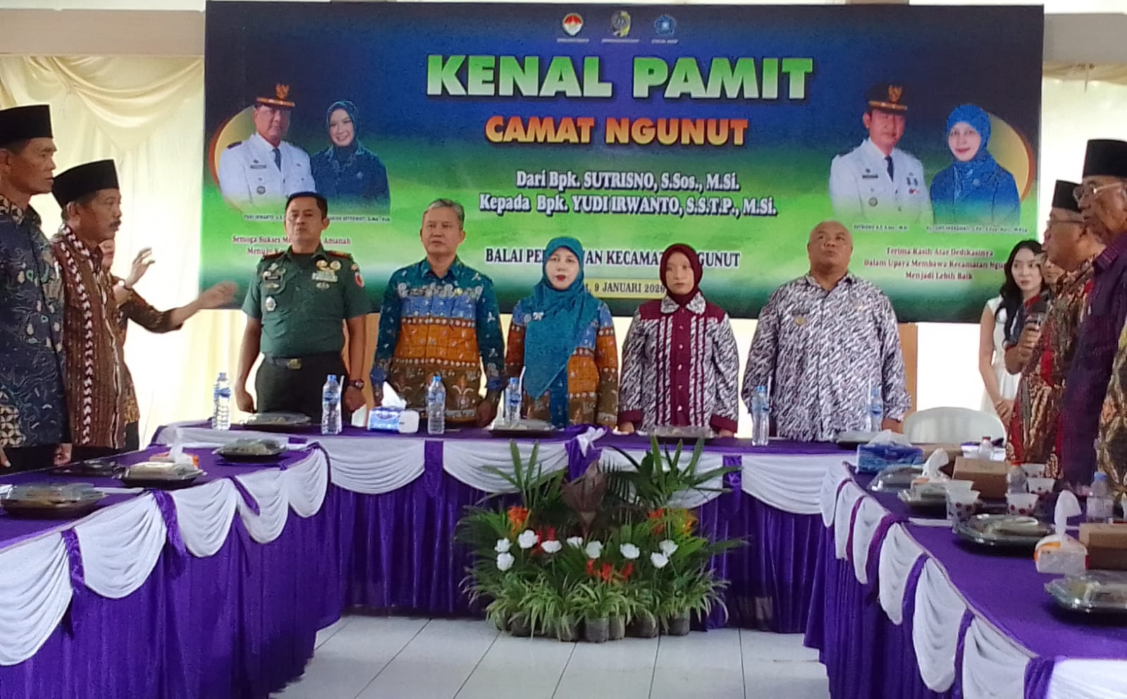 suaramerahputih.id // TULUNGAGUNG – Suasana khidmat dan penuh rasa kekeluargaan mewarnai acara kenal pamit Camat Ngunut yang digelar di Balai Pertemuan Kantor Kecamatan Ngunut, Jumat (9/1/2025). Acara yang dimulai pukul 13.00 WIB tersebut menandai pergantian kepemimpinan dari Camat Ngunut lama, Sutrisno, S.Sos., M.Si., kepada Camat Ngunut yang baru, Yudi Irwanto, S.STP., M.Si.