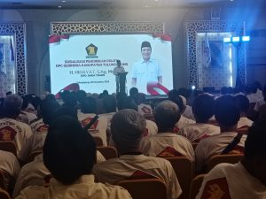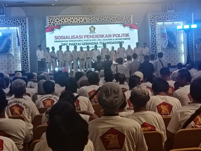 suaramerahputih.id // TULUNGAGUNG – Dewan Pimpinan Cabang (DPC) Partai Gerindra Kabupaten Tulungagung menggelar konsolidasi partai yang dikemas dalam kegiatan Sosialisasi Pendidikan Politik, Minggu (28/12/2025). Kegiatan yang berlangsung di lantai 7 Hotel Lojikka tersebut diikuti ratusan kader, mulai dari jajaran pengurus DPC, PAC, ranting, hingga sayap partai.