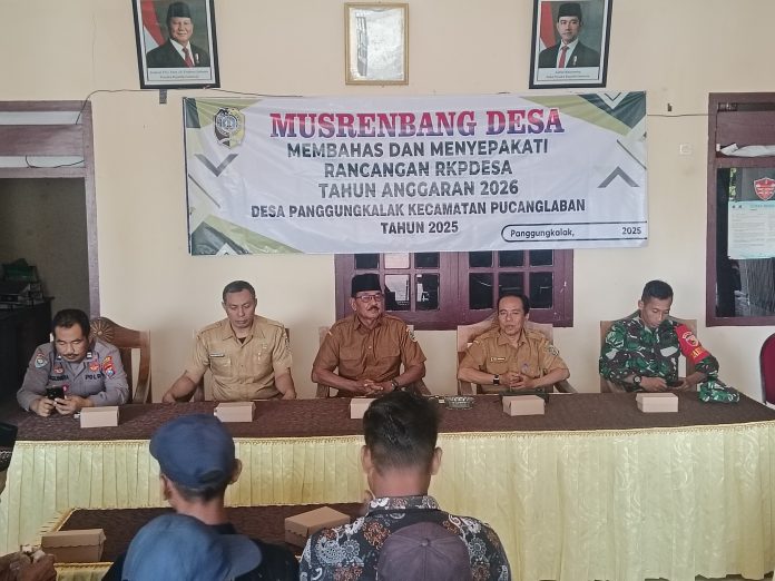 Suara Merah Putih News // Tulungagung – Pemerintah Desa Panggungkalak, Kecamatan Pucanglaban, Kabupaten Tulungagung, menggelar Musyawarah Perencanaan Pembangunan Desa (Musrenbang Desa) dalam rangka membahas dan menyepakati Rancangan Rencana Kerja Pemerintah Desa (RKPDesa) Tahun Anggaran 2026. Kegiatan ini berlangsung di Aula Balai Desa Panggungkalak pada Senin, 21 Juli 2025 pada pukul 09:30 WIB sampai selesai.