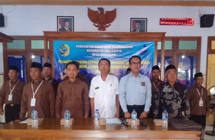 Pelaksanaan ujian tersebut dihadiri oleh unsur Forkopimcam Pagerwojo, antara lain Camat Pagerwojo, Kapolsek Pagerwojo, dan Danramil Pagerwojo. Turut hadir Kepala Desa Mulyosari beserta seluruh perangkat desa, BPD, LPM, tokoh masyarakat, tokoh agama, tokoh pemuda, serta dua kandidat peserta ujian.